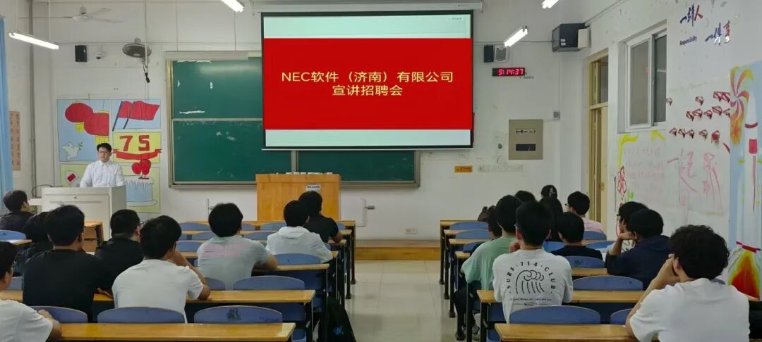 NEC 软件(济南)有限公司招聘负责人首先从公司成立初期的业务布局,到如今在软件研发领域的核心竞争力进行介绍,围绕技术开发、项目管理、产品运营等多个岗位方向,详细解读了各岗位的职责要求、任职条件、薪资福利以及职业发展路径,让在场求职学生全面了解了企业的情况。随后开展笔试面试,考察学生的思维能力与基础素养。