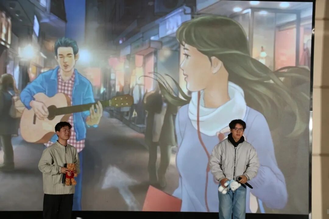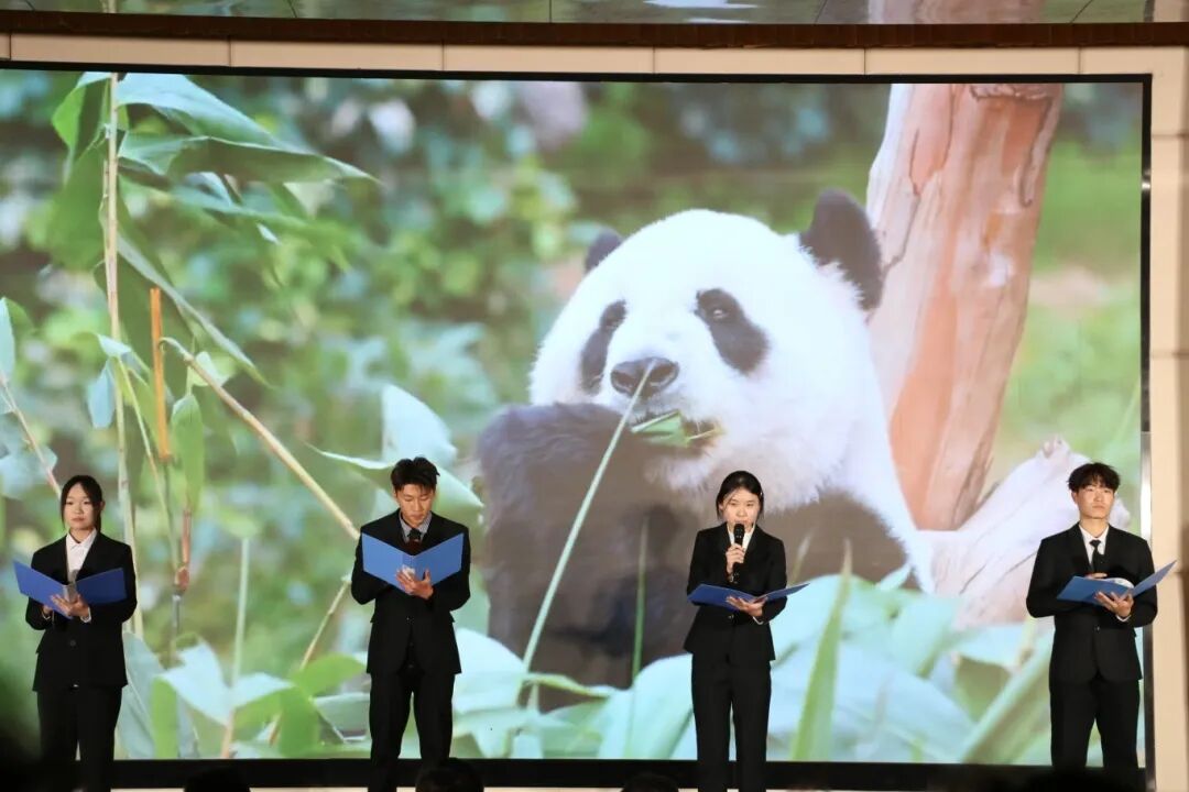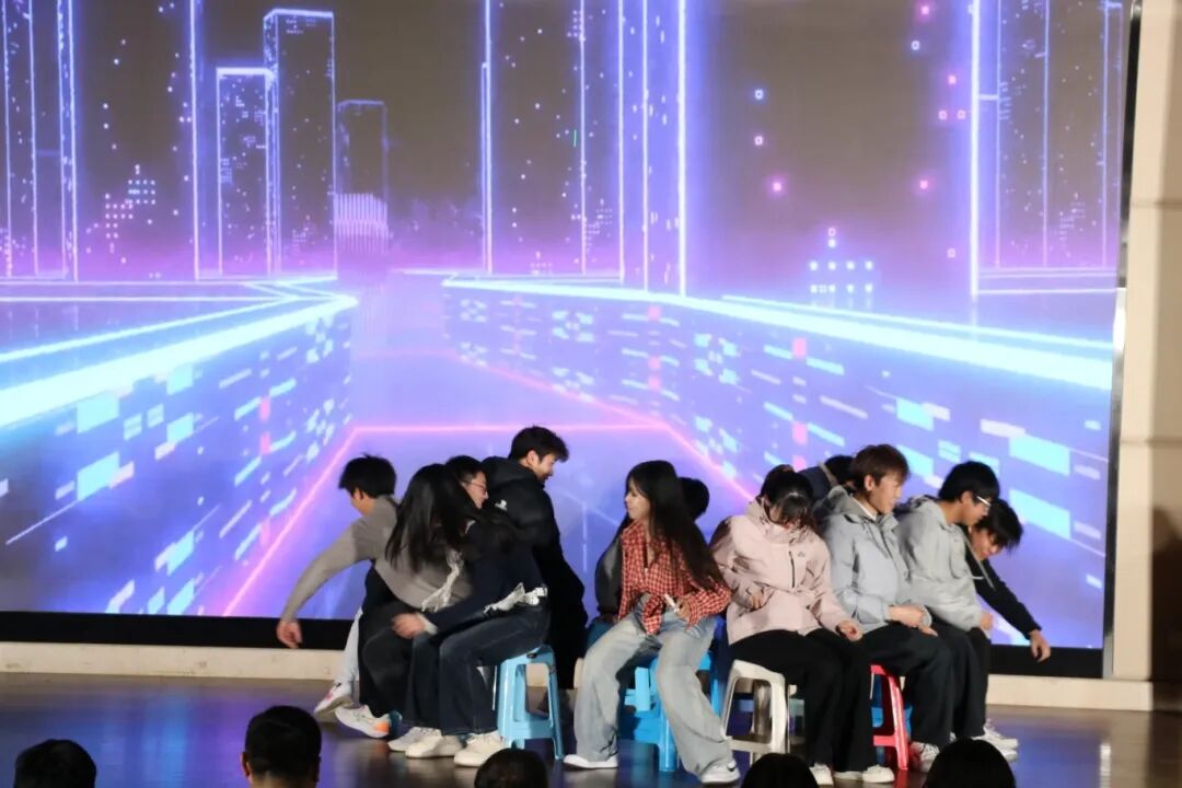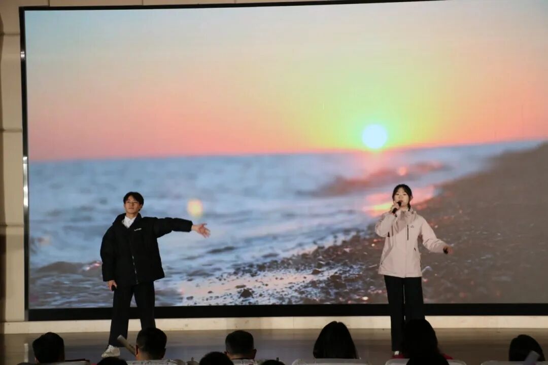 《等你下课》《默》两首音乐作品以不同风格唤起青春共鸣,随后的“抢凳子”游戏环节,十名同学同台竞技,紧张又欢乐的氛围让现场掌声、笑声此起彼伏,紧接着朗诵《山河壮丽,家国荣光》以铿锵语调抒发家国情怀,将晚会推向高潮。