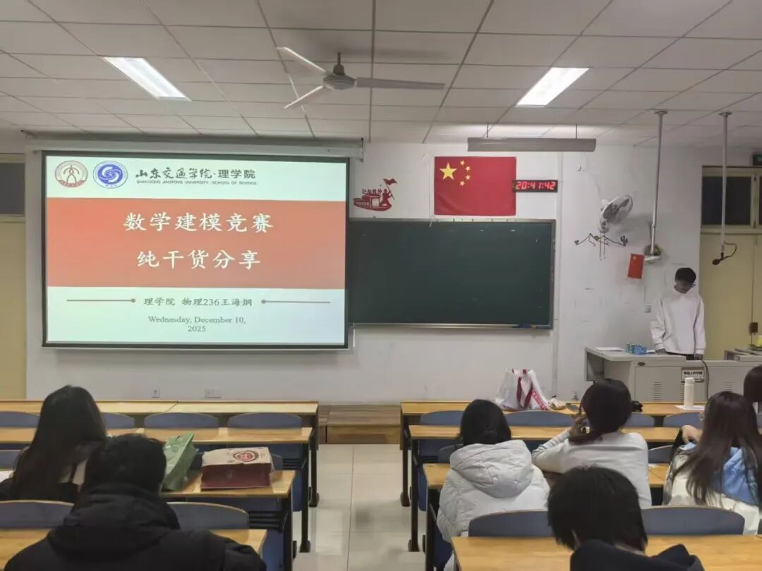 在数学建模竞赛经验分享环节,物理236班王海烔同学围绕数学建模学习与备赛的核心需求,从科学高效的学习方法、清晰规范的比赛规则、贴合实战的注意事项三个核心方面,进行了全面、系统且深入浅出的解读与分享,详细拆解数学建模的学习路径与备赛关键,搭建起清晰的学习框架。