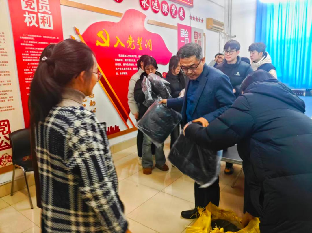随后,发放环节温情启幕。领导老师们依次为受助学生代表送上精心准备的羽绒服等保暖物资,双手递出的不仅是抵御严寒的衣物,更是学院对学子们的牵挂与期许。受助学生代表真挚表达了对学院的衷心感谢,表示将铭记这份温暖关怀,转化为勤学笃行的不竭动力,以优异的成绩回报学院、回馈社会。