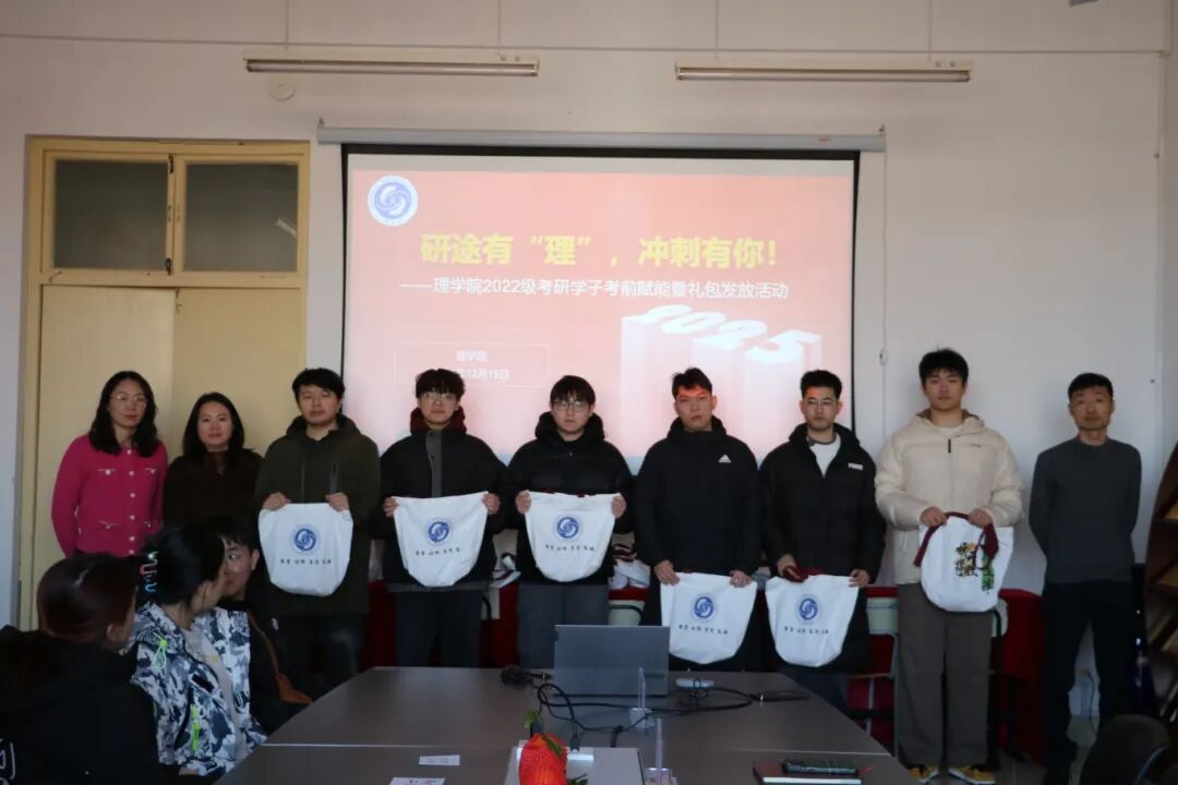 为鼓励2022级考研学子积极备考,提振信心、营造温馨向上的学院氛围,理学院于12月15日下午在2A406会议室举办“研途有‘理’,冲刺有你”考研赋能暨加油礼包发放活动。学院党委书记单宝森、院长王伟、党委副书记张秋红、副院长刘元涛、学术副院长张路路,以及学生工作办公室主任(团委书记)、2022级辅导员张雯共同出席,为同学们送上关怀与祝福。