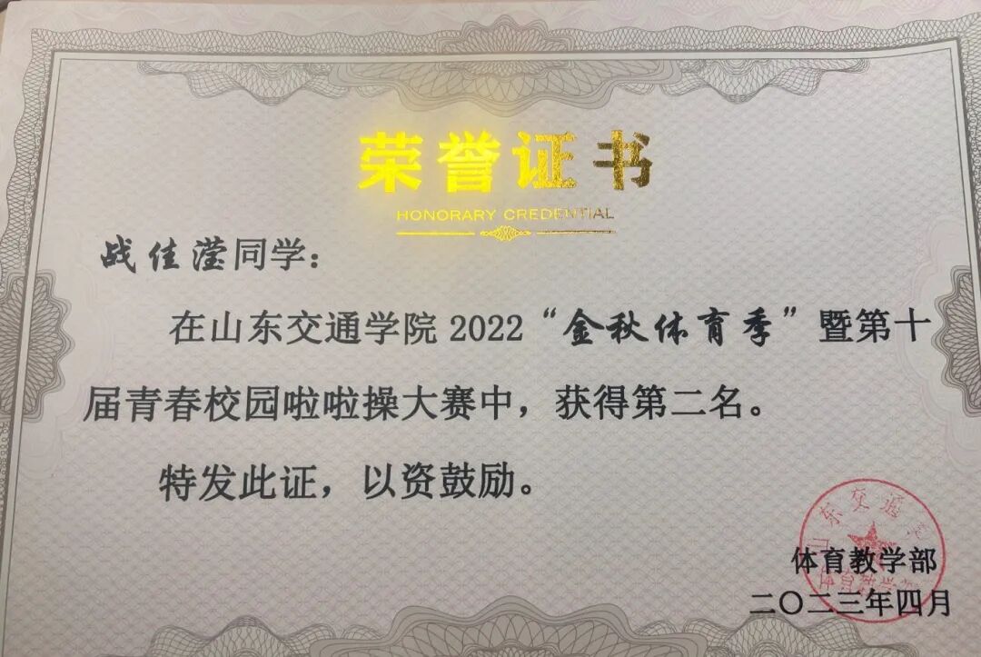 带领并参与获得山东交通学院2023年春季运动会千人啦啦操比赛中荣获第六名的好成绩;