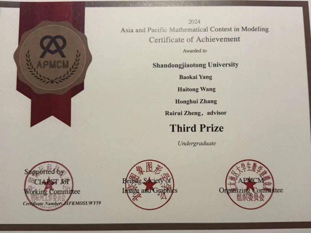 ●2025年1月获亚太杯大学生数学建模竞赛国家级三等奖;